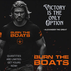 Embark on a journey of relentless determination with BRICK's "BURN THE BOATS" T-shirt. Inspired by the unyielding resolve of Alexander the Great when faced with a very small chance of victory against the larger Persian army. "BURN THE BOATS!" were the words that galvanized the warrior spirit giving Alexander the Great his greatest victory. Alexander burned the boats his men sailed on to get there, removing any other option than victory. BURN THE BOATS shows you are a person is strong mind, sound body, and a tenacity that will not quit!