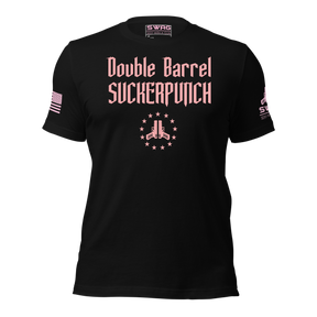 All is Fair in Love and War, so welcome to our "Double Barrel SuckerPunch" shirt. For those who know, that if it is worth fighting for, then its worth fighting to win for. The ladies who come out to fight with both barrels blazing. Wear What Matters.