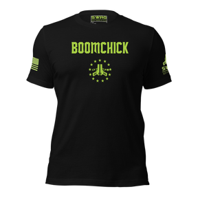 Step into the world of "BOOMCHICK": A collection designed for women who know their guns and ammo inside and out. These women are confident, secure, and proud to exercise their Second Amendment rights. They have a deep understanding of firearms and a commitment to self-defense. This collection is a tribute to their unyielding spirit and serves as a reminder that strength and self-assurance are the ultimate accessories.