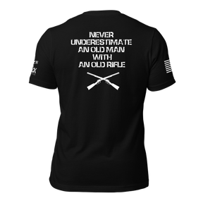 NEVER UNDERESTIMATE AND OLD MAN OLD RIFLE SHIRT