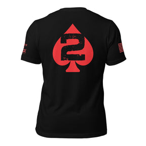 TWO OF SPADES. A symbol of those united behind our founding fathers belief its citizens should be armed. Wearing this 100% Ring Spun Cotton shirt says it all.